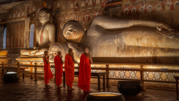 Monks Infront Reclining Buddha