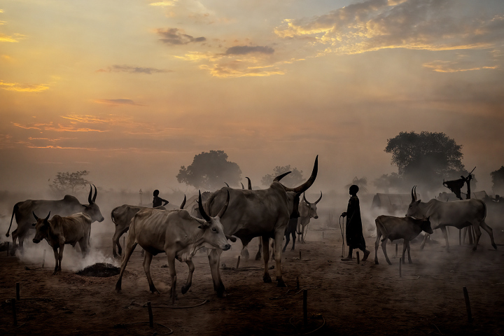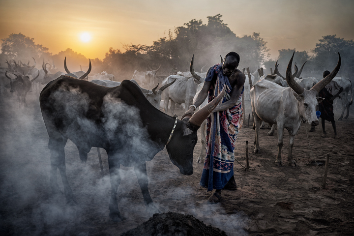 Cleaning The Cow At The Sunset